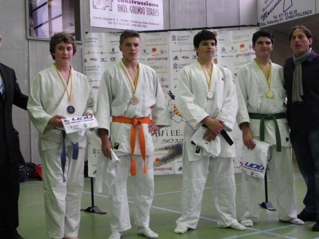 Amb la celebració del quart control escolar ja s’ha acabat la primera fase de les competicions del Esport Escolar on participen Judokes infantils i cadets. Les diferents competicions s’han vingut realitzant des del passat mes de desembre de 2012 fins aquets mes de febrer i em passat pels tatamis de Son Servera i Sineu. Els nostres representants han realitzat un molt bon aprenentatge, ja que era la primera vegada que competien, guanyant combats davant judokes de major cinturó i experiència. La nostra felicitació i recordar-vos que la pròxima competició ja serà el campionat de Mallorca. Els nostres representants són: -Categoria infantil. Estefanel Andoni. -Categoria cadet. Guillem Mir i Roger Estelrich.